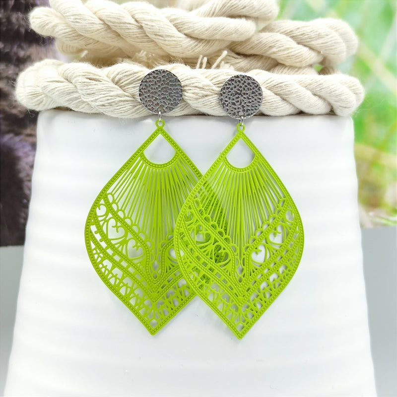 Für alle die s zart mögen, wunderbar federleichte Ohrstecker, filigrane Anhänger aus gefärbtem Messing in Tropfen Form, baumeln sanft am Ohr.